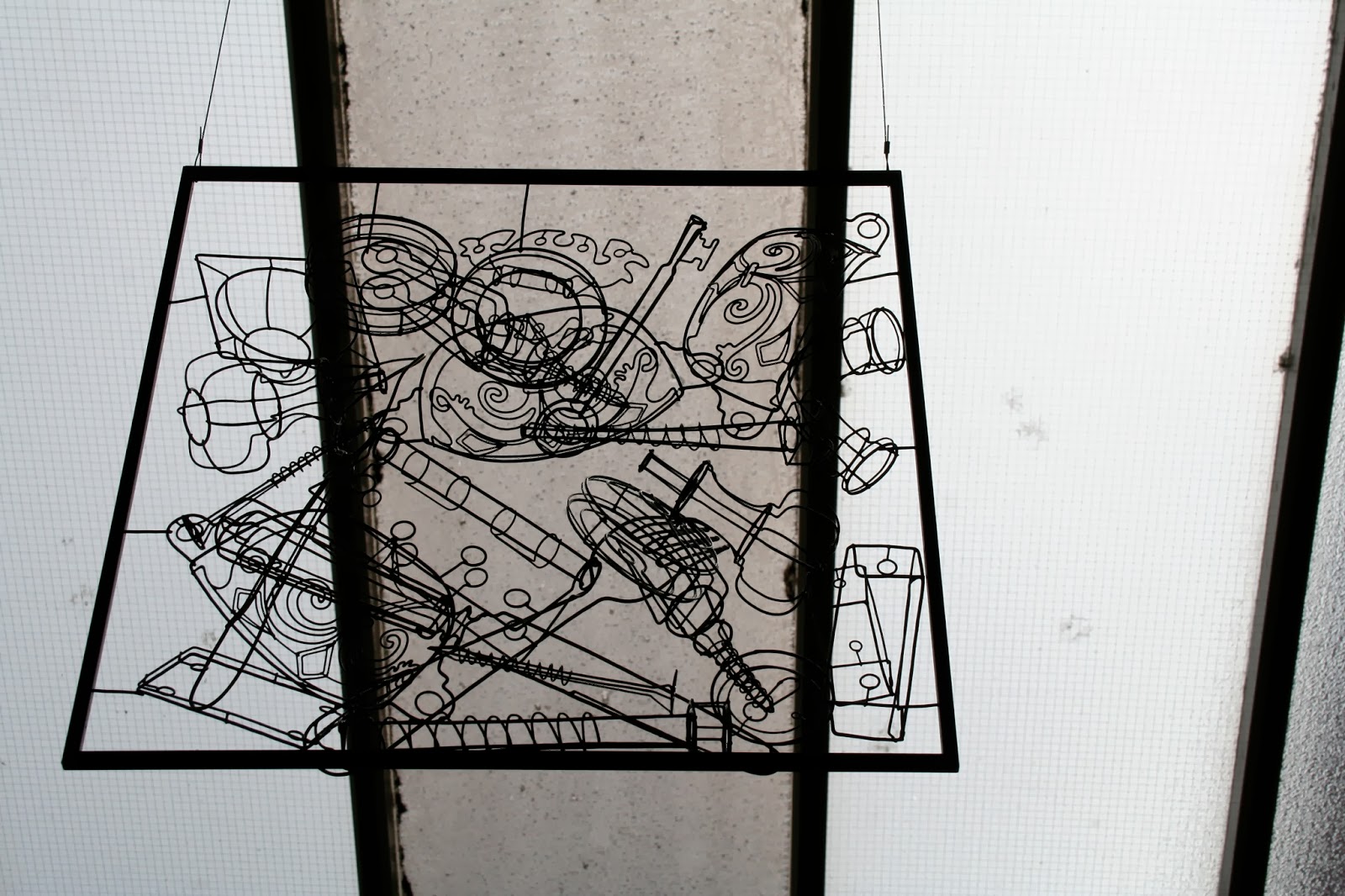 I took inspiration from the random contents of boxes and the variant shades of painted green found within the factory. I think of this piece as a layered wire painting exploring two and three dimensions. Whilst making the piece I felt I was taming clutter, exploring green whilst simultaneously pondering why these objects ended up together.